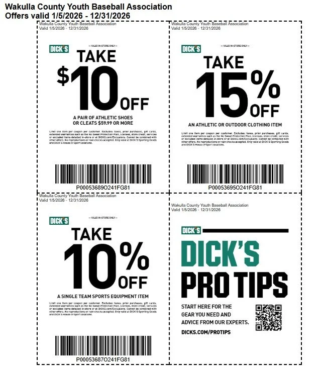 Access our league’s 2026 DICK’S Team Sports Coupon by clicking on the link below.